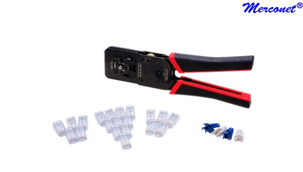 AJW6 Krimptang ANU6 Cat5e RJ45 connector 25 stuks ANU7 Cat6 RJ45 connector 50 stuks ANU8 Cat6a RJ45 connector 25 stuks ANU9 RJ45 Hoes 20 stuks