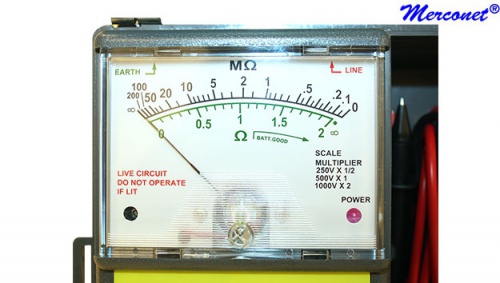 1. De IM40 megohm meter geeft aan wat de weerstand is van de fout. Rond de 1 Ohm kortsluiting rond de 100 KOhm vocht. Dit is de reden waarom een TDR niets meet (hoger dan 100KOhm).