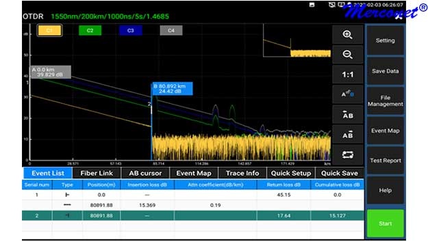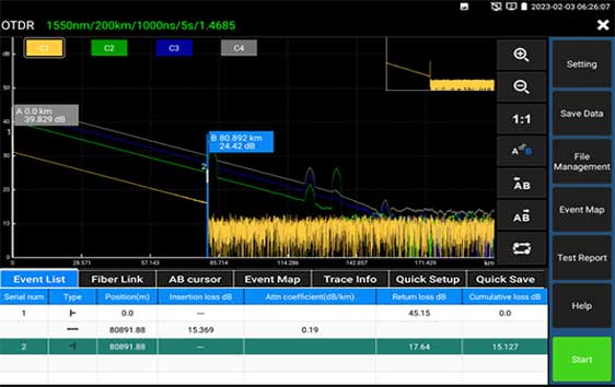 Bij meerdere events, lange lengtes, of werkende maar slechte lassen of connectoren is de expert mode met ook een analyse op de PC de volgende stap. Een groot scherm en afhankelijk van de gekozen .sor analyse software extra zoek mogelijkheden.