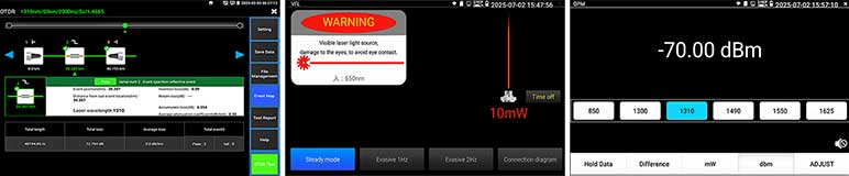 Er zijn 3 methodes om te meten Fast Mode, Quick setup en Expert Mode: Het meten van een glasvezel is met de automatische Fast mode zeer eenvoudig geworden de resultaten zijn veelal direct voldoende. Dient er een verder analyse gedaan te worden dan kan met de Quick setup de belangrijkste variabelen snel veranderd worden. Voor een diepgaande foutanalyse is er de Expert mode en software voor Laptop/PC.