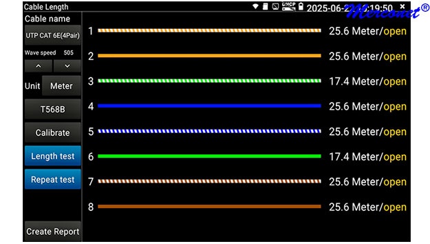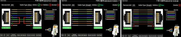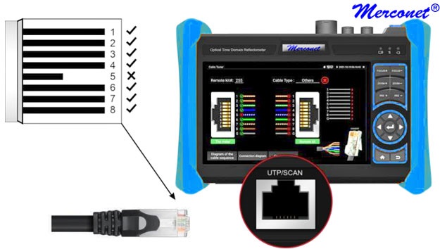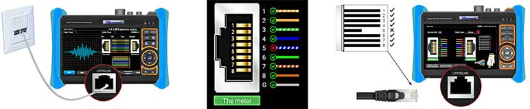 • Detecteert: Continuïteit, volgorde 1-8, kortsluiting, onderbreking, twisting, afscherming