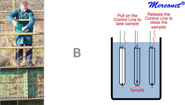 Monstername systeem ANI0 is een dompelfles voor het nemen van vloeistof monsters met twee bediening systemen. 1.) Op een zelf te bepalen diepte. Na het onderdompelen tot de juiste diepte wordt de vloeistof monsterfles geopend door te trekken aan de tweede draad. 2.) Bij bodem monsters met de pin aan de onderzijde welke ingedrukt wordt door een harde bodem. Toepasbaar o.a. zeewater, zoetwater bij milieu monsters van bronnen, sloten en rivieren of olie en olieresten (sludge) in een tank. Dit tot een diepte van 50 meter. De ANI0 is gemaakt van vonk onderdrukkend vernikkeld messing. Het monster is snel over te gieten in een monsterfles zoals de Merconet ANI3 en ANI4. De kabels zijn noodzakelijk voor een juiste werking, dit is geen optie. Verschillende soorten en lengtes zijn leverbaar afhankelijk van de toepassing. RVS ketting, RVS draad, Polypropyleen en Koper voor een EX toepassing. In de lengtes van 10, 25 en 50 meter. Handhaspels zijn er in propyleen of geleidend plastic voor explosie gevoelige EX omgevingen welke voorzien is van een aardingskabel. Gebruik geen RVS kabel in een ATEX (ATmosphères EXplosibles) explosiegevoelige omgeving.
